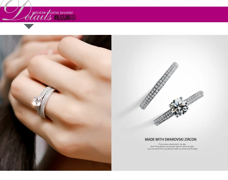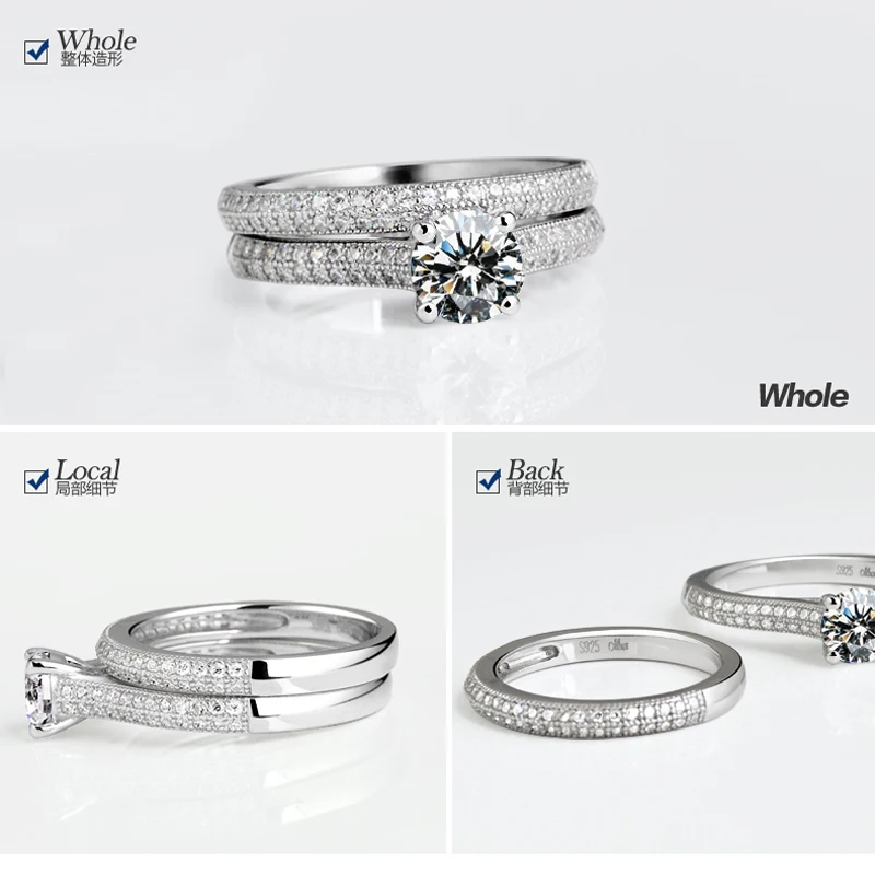 - 1 pair Vintage Halo 925 Sterling Silver Wedding Ring Set For Women Lady Anniversary Gift Jewelry Bulk Sell