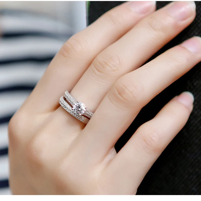 1 pair Vintage Halo 925 Sterling Silver Wedding Ring Set For Women Lady Anniversary Gift Jewelry Bulk Sell